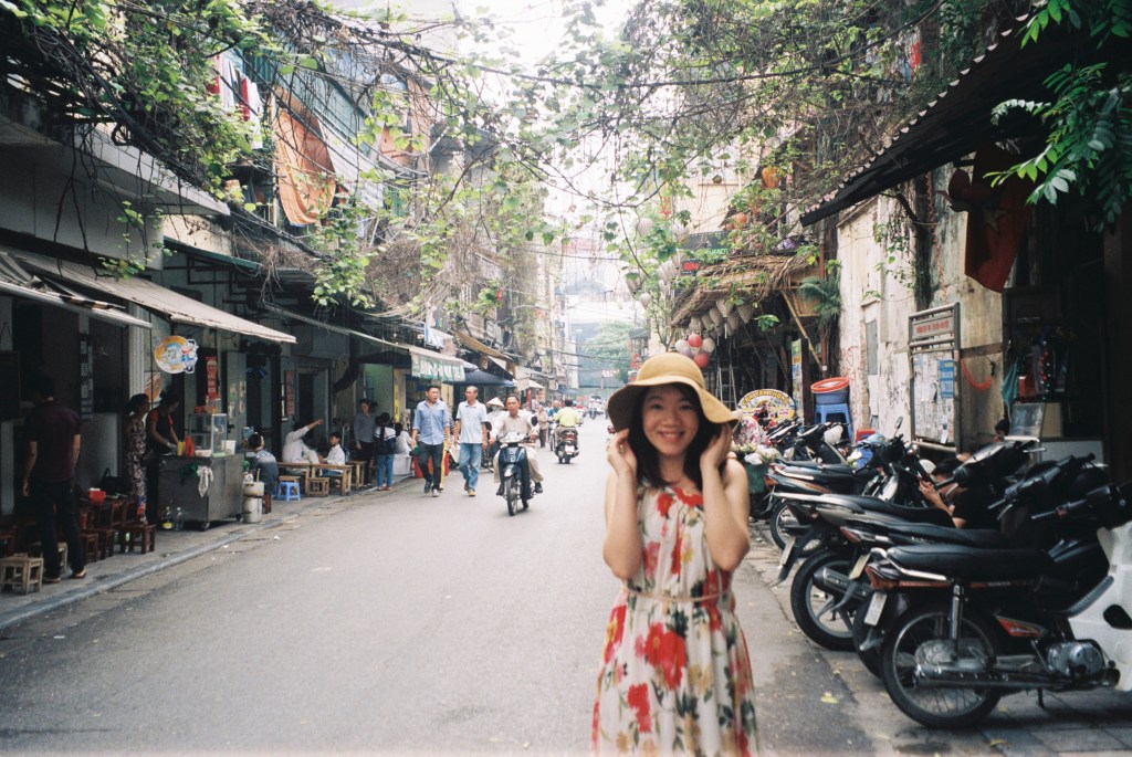 Tháng ba là tháng Hà Nội đẹp nhất. Từ Chu Văn An đi bộ ra dọc Bách Thảo ngắm những cây sưa nở trắng bung, sau một đêm mưa là rụng trắng lối đi, để rồi chỉ vài ngày sau trổ lá xanh non. Màu xanh mình thích nhất trong các gam màu xanh. Cuối tháng ba cũng màbắt đầu có hoa loa kèn sớm. Loa kèm chuẩn là loa kèn kép, một cành có ba bốn bông, đắt mấy mình cũng mua (sau khi mặc cả) :)) Và đây là một bức ảnh film outnet xuất sắc của mình ở Hà Nội. Hà Nội xe máy đầy đường, cây dây leo bám vào dây điện chằng chịt, quán xá vỉa hè ăn cả ngày không hết.